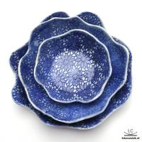 Voor de decoratie maken we gebruik van textuur, zoals van kant of bladeren. In die textuur wrijven we kleur, waarna we deze afdekken met een glanzend laagje glazuur. Dit glazuur is wat we tijdens de tweede bijeenkomst aanbrengen. Na nog een laatste keer stoken op ruim 1200C is je porseleinen servies helemaal klaar voor gebruik, en zelfs vaatwasserbestendig!