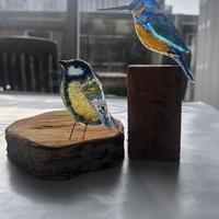 Na de workshop worden de vogeltjes afgebakken (800°C) en desgewenst gemonteerd op een stukje hout of kaarshouder.
