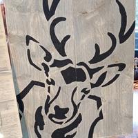 Dit mooie steigerhouten schilderij/wandbord van +/- 60x80cm gaan we eerst wit wassen. Hierna schilder je met een sjabloon het hert erop. Mooi voor de winterdagen en voor Kerst.
